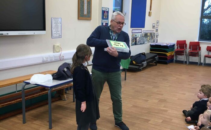 Mr Kaye came to school and delivered a collective worship based on Jesus’ miracle of healing the paralysed man. The children so enjoy Mr Kaye’s stories and amazing props!