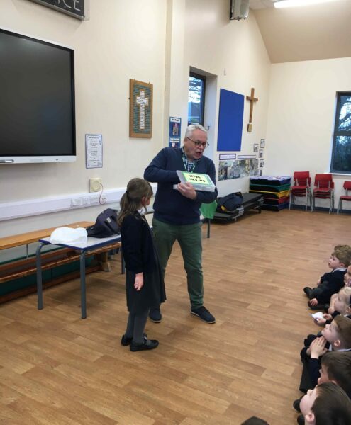 Mr Kaye came to school and delivered a collective worship based on Jesus’ miracle of healing the paralysed man. The children so enjoy Mr Kaye’s stories and amazing props!